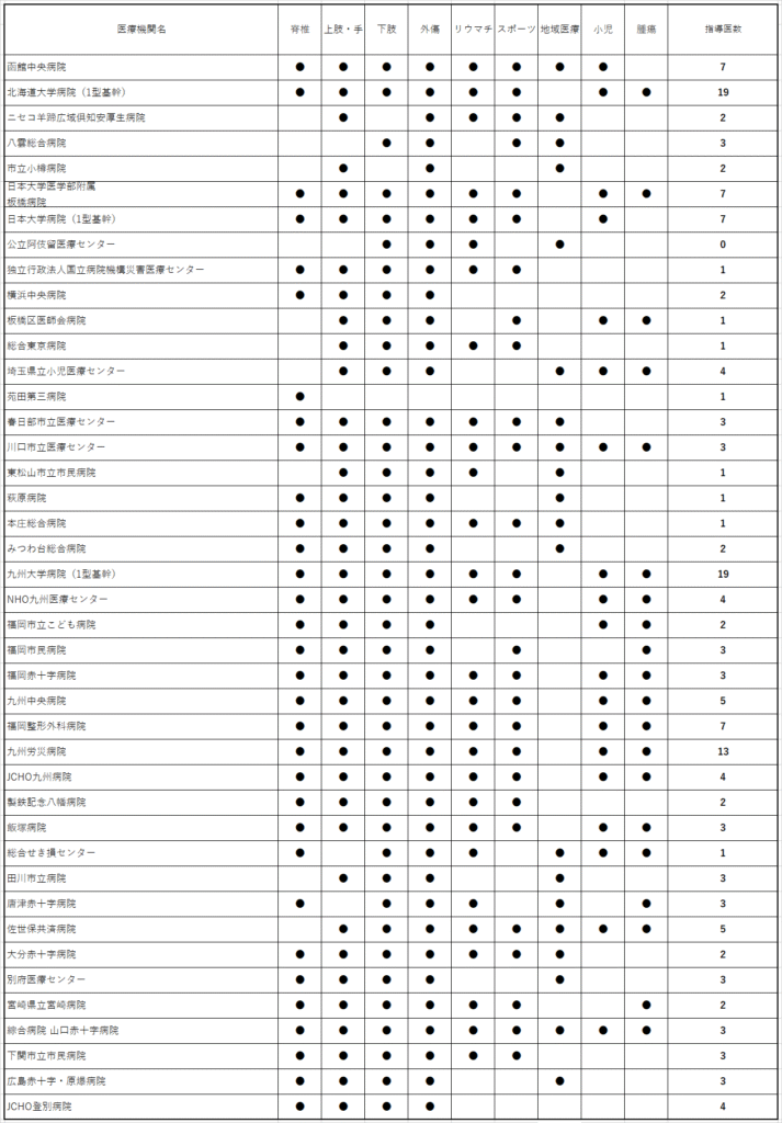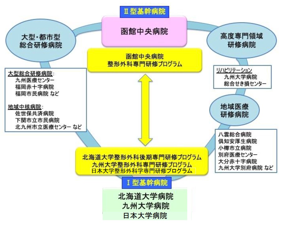 さらに、北海道大学・九州大学整形外科・日本大学整形外科と地域医療研修病院と連携することにより、プライマリ・ケアから最先端の臨床・研究までを偏りなく学ぶことができます。